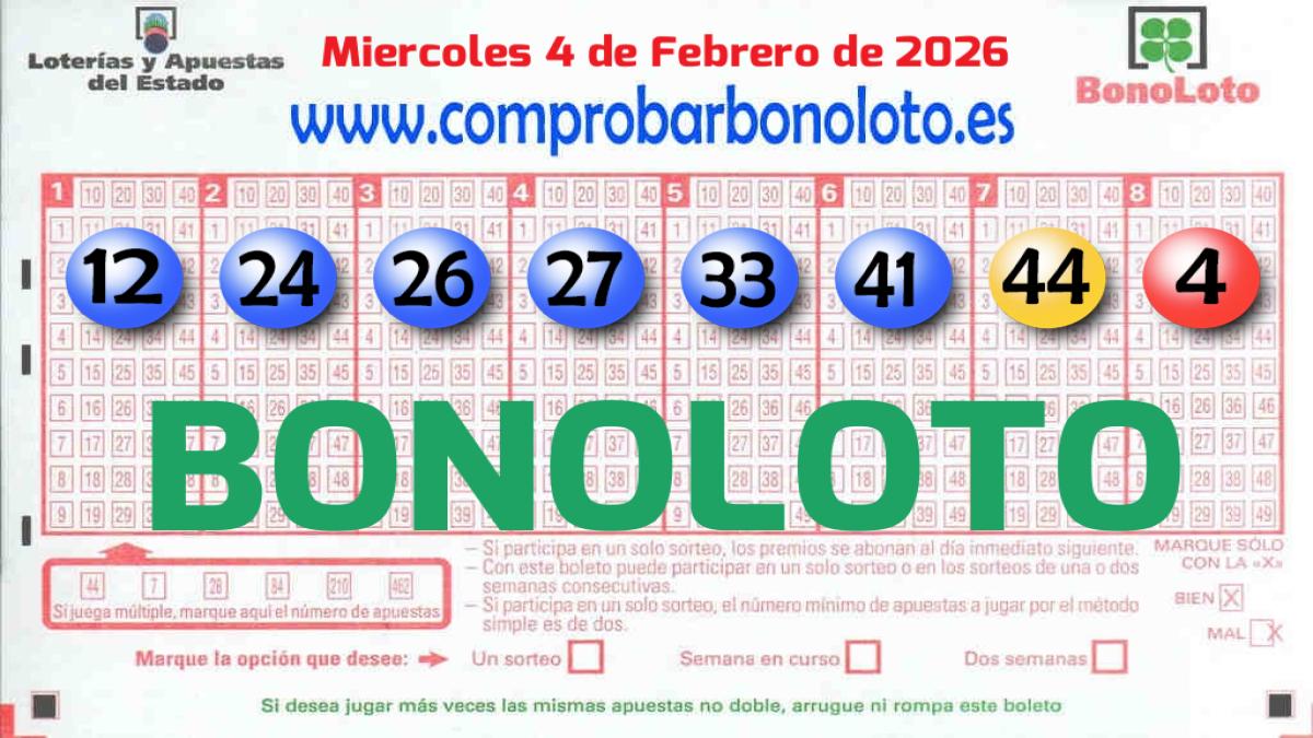 Sí tienes boletos de la Bonoloto de hoy Martes 3 de Febrero de 2026 haz clic en el vídeo para comprobar los resultados y descubre si eres el próximo ganador. También puedes comprobar tu Bonoloto con la cámara del movil o tecleando la combinación de tu boleto.| Categoría | Apuestas | Premios |