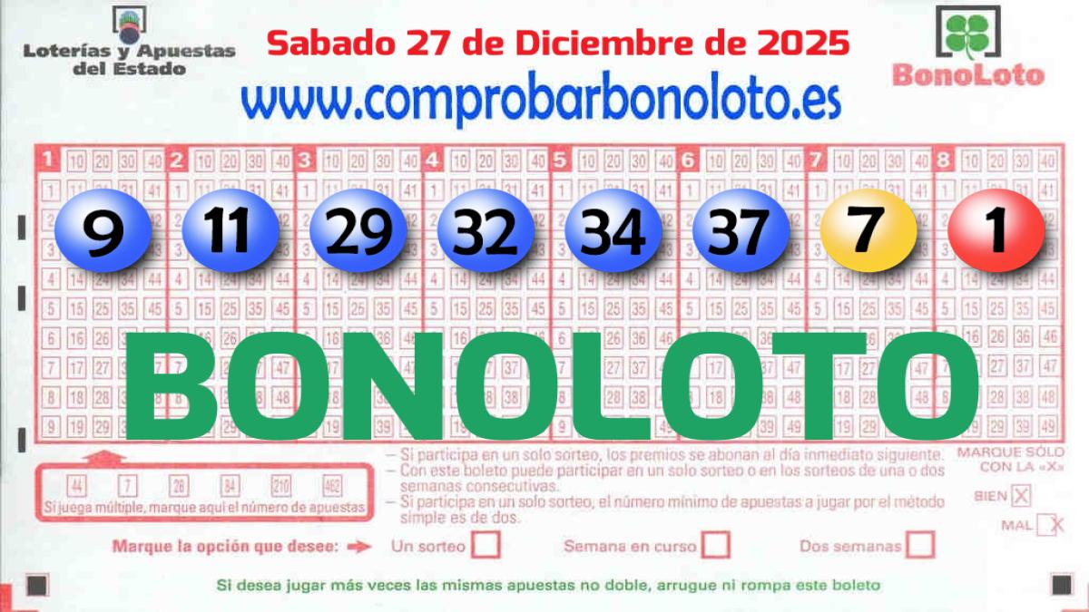 Sí tienes boletos de la Bonoloto de hoy Sábado 27 de Diciembre de 2025 haz clic en el vídeo para comprobar los resultados y descubre si eres el próximo ganador. También puedes comprobar tu Bonoloto con la cámara del movil o tecleando la combinación de tu boleto.| Categoría | Apuestas | Premios |