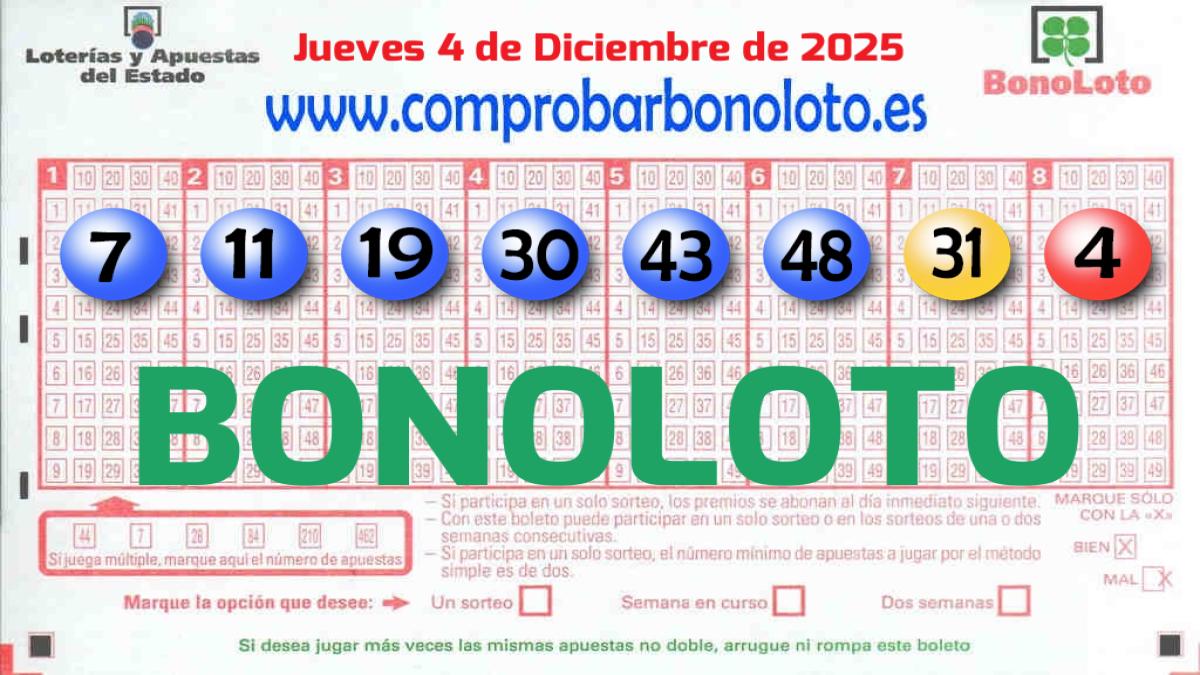Bonoloto del Jueves 4 de Diciembre de 2025