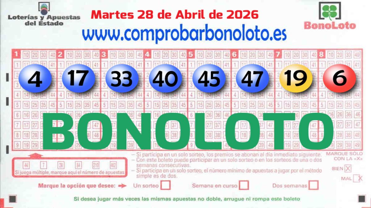 El sorteo de La Bonoloto celebrado el Martes 28 de Abril de 2026 ha dejado la suerte en la localidad de Tolosa. El punto de venta que lo ha hecho posible está situado en la calle Rondilla, 7 de esta localidad.Desde aquí también queremos felicitar a los ganadores de este premio que ofrece Loterías y Apuestas del Estado.Aprovechamos para recordarte que puedes comprobar La Bonoloto desde esta página, te indicaremos la categoría y el importe de tus premios de La Bonoloto ...