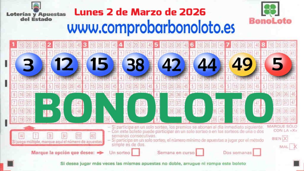 El sorteo de La Bonoloto celebrado el Lunes 2 de Marzo de 2026 ha dejado la suerte en la localidad de Moncada. El punto de venta que lo ha hecho posible está situado en la calle Badia, 55 de esta localidad.Desde aquí también queremos felicitar a los ganadores de este premio que ofrece Loterías y Apuestas del Estado.Aprovechamos para recordarte que puedes comprobar La Bonoloto desde esta página, te indicaremos la categoría y el importe de tus premios de La Bonoloto ...