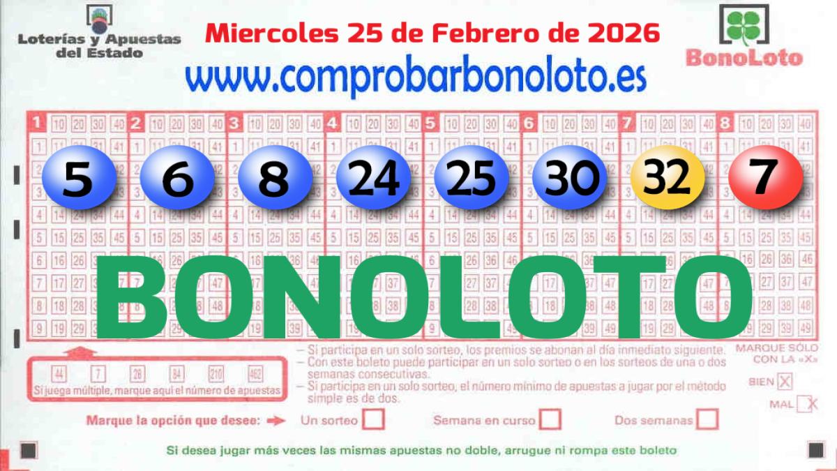 Sí tienes boletos de la Bonoloto de hoy Miércoles 25 de Febrero de 2026 haz clic en el vídeo para comprobar los resultados y descubre si eres el próximo ganador. También puedes comprobar tu Bonoloto con la cámara del movil o tecleando la combinación de tu boleto.| Categoría | Apuestas | Premios |